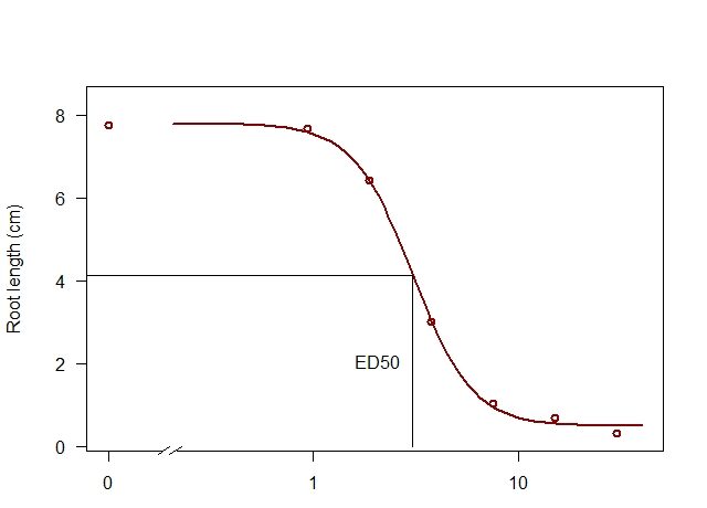 Concentrations of a chemical (Root length inhibitor) that might evoke an effect in living organisms (Root length).