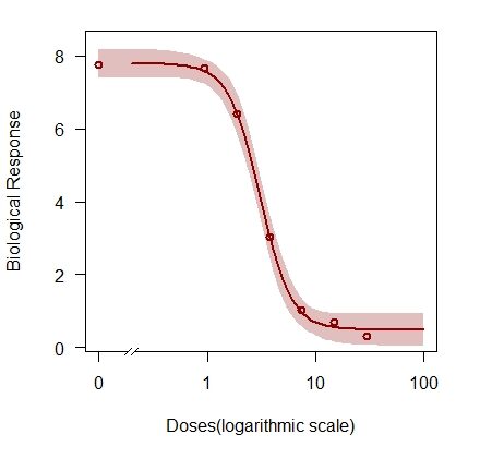 Figure 1 illustrates a general do-response curve and its confidence interval. Please note that the smallest 95% confidence band intervals are in the middle of the curve. As mentioned in the legend, these confidence intervals are unique; they only represent the parameters in this single experiment. Consequently, toxicity bioassays must be replicated in time and space to get “more true” confidence intervals that can be used in practice.